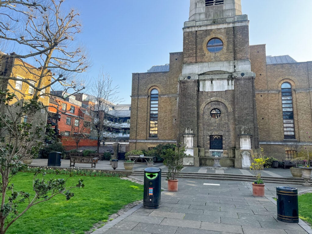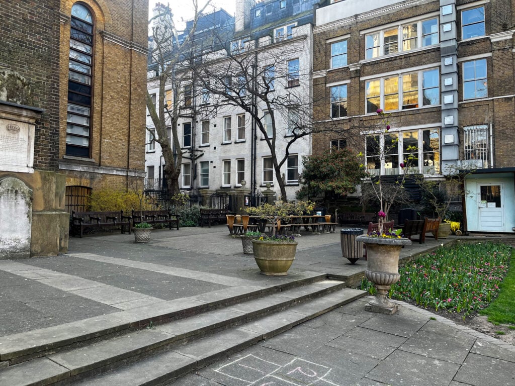 Border Archaeology undertook an Archaeological Desk-Based Assessment for a church PCC regarding proposed landscaping works in a former churchyard in Soho, London.
