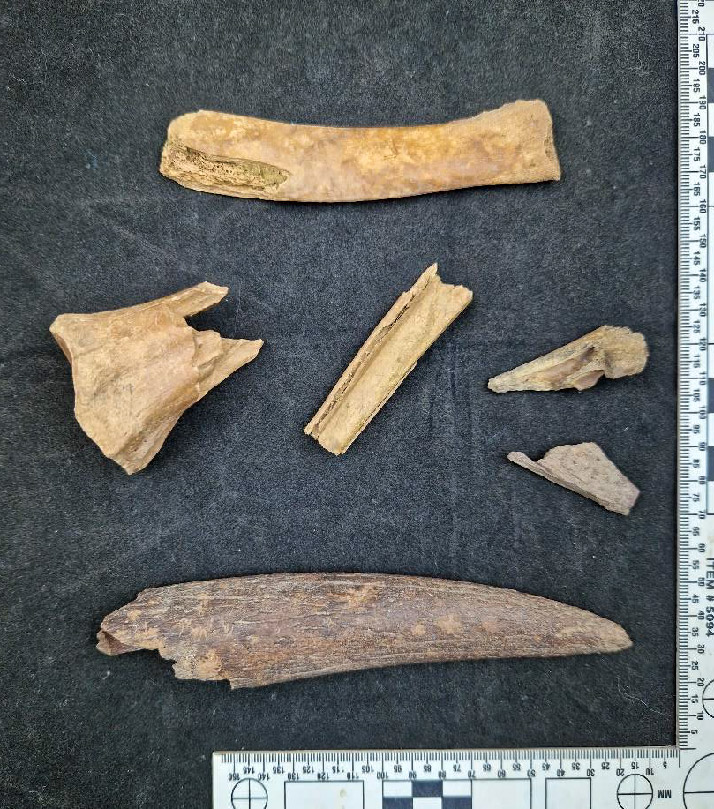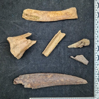 A possible palaeochannel – an old and no longer active watercourse – was revealed in the natural in one of the trenches which produced finds of oyster shell, a probable goat horncore, pieces of probable St Neot’s type pottery dating to the 9th to 11th centuries and animal bone fragments, including an adult cattle metatarsal fragment. Also found were the charred cereal remains of rye and wheat while the range of snail species present indicated an environment of slowly moving shallow water.