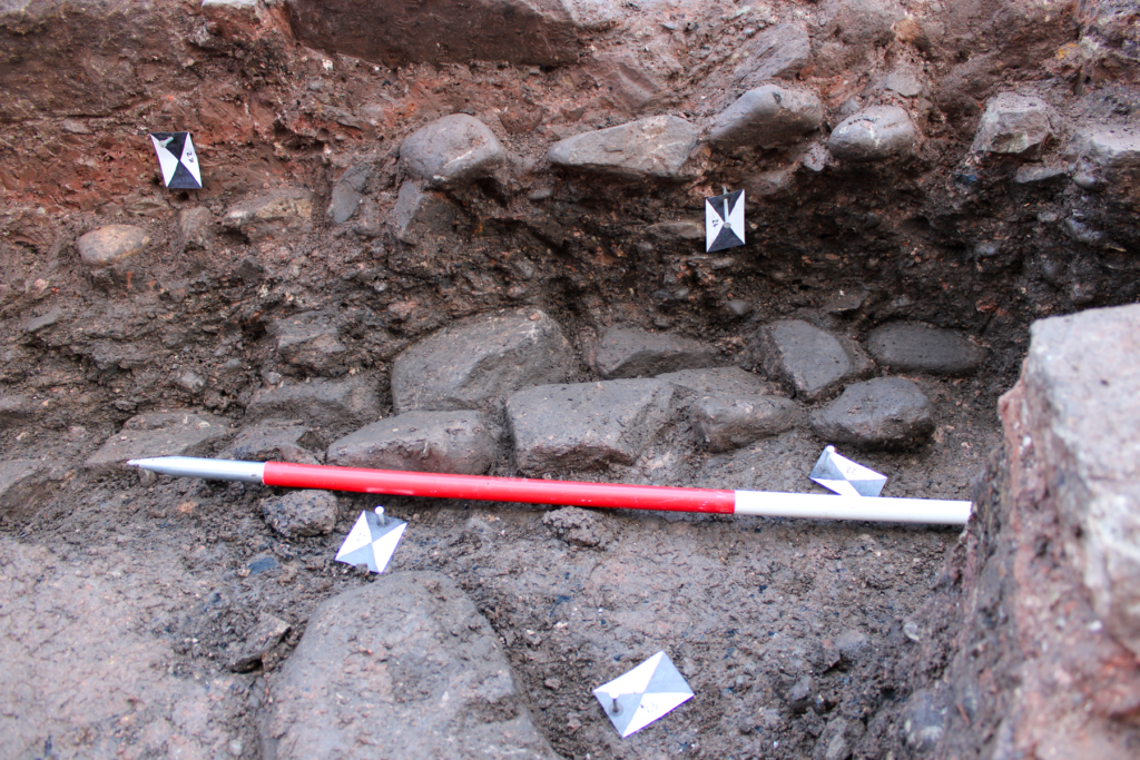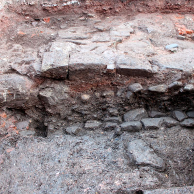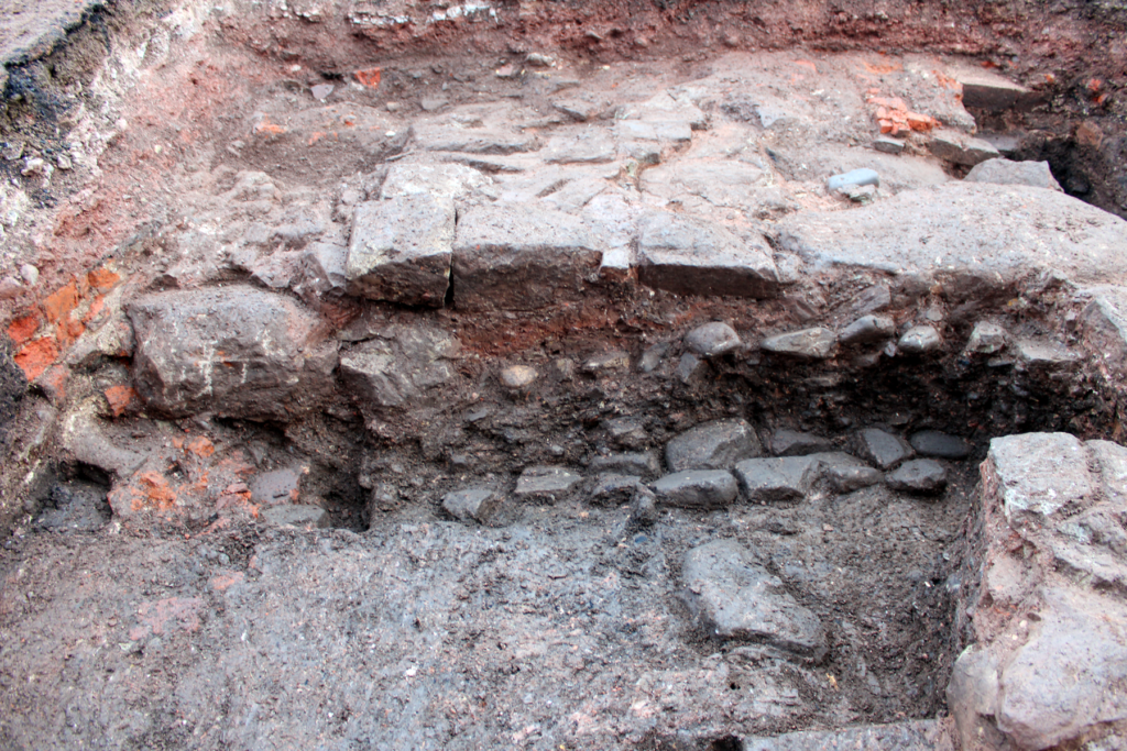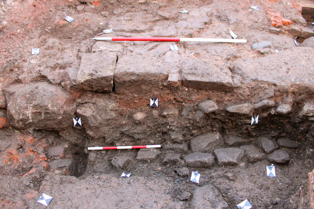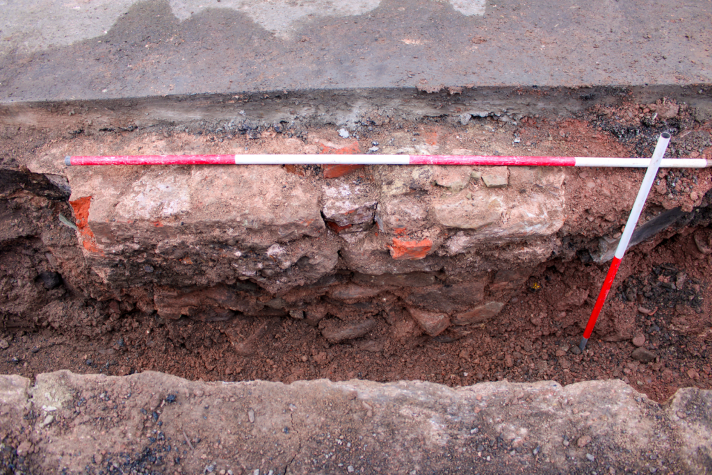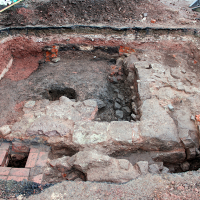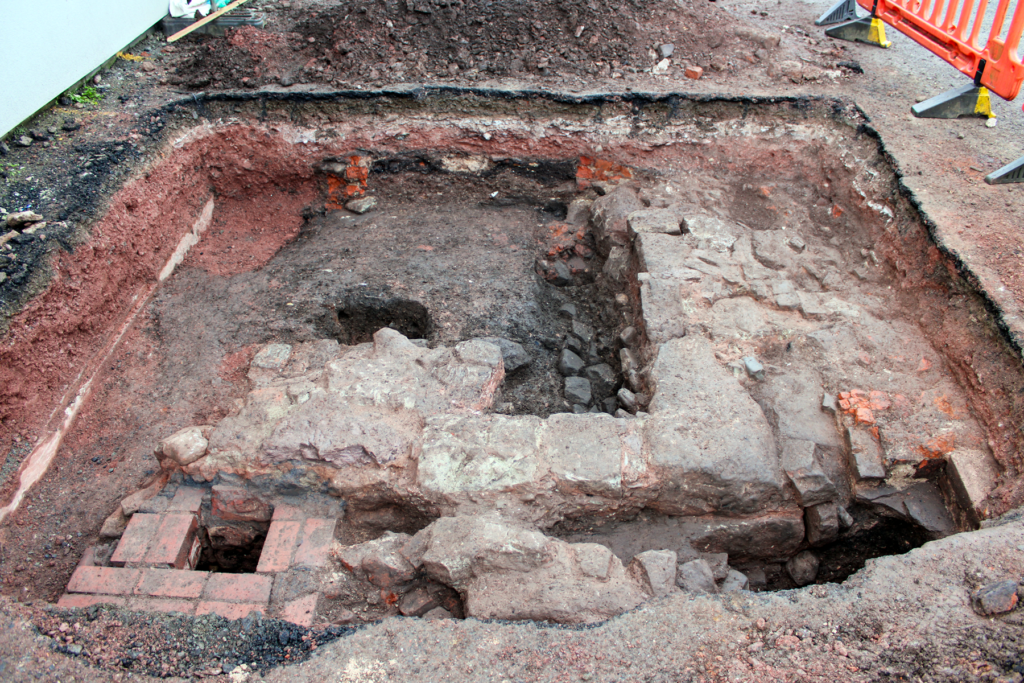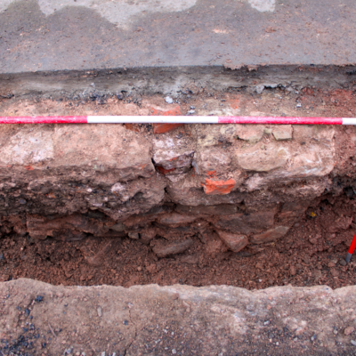 The substantial structural remains revealed are thought to relate to the 17th century timber-framed building recorded in 1931 as the site of St. Vincent’s Orphanage. The wall remains revealed reflect the post-medieval development of the street frontage, with evidence of possible medieval cellarage at the junction with the neighbouring street.