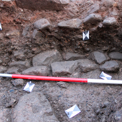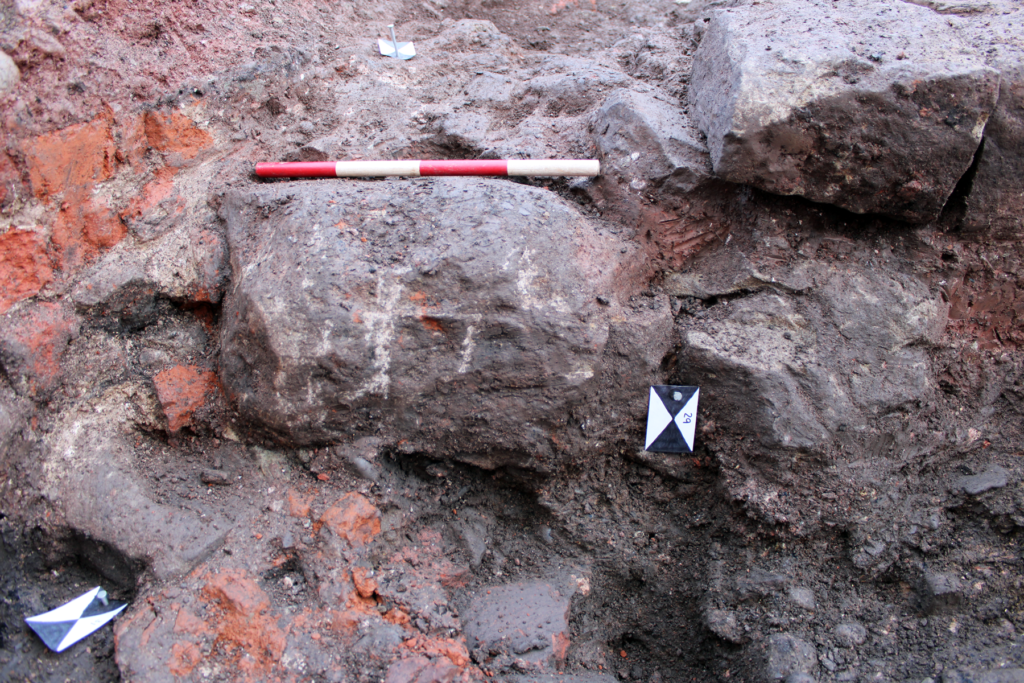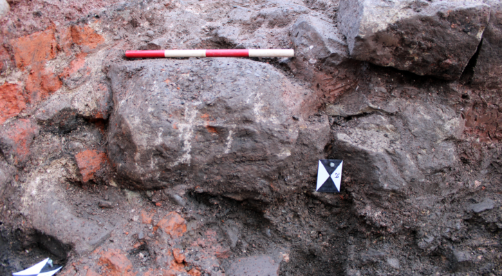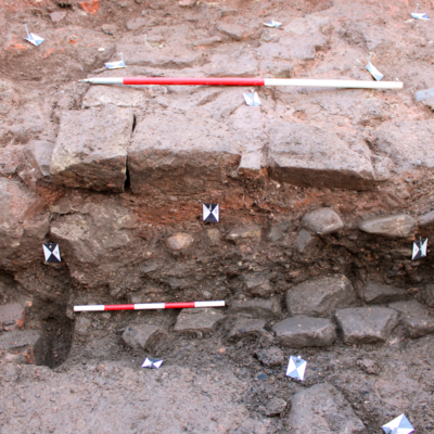 - Substantial foundation wall of a 17th century timber-framed building uncovered