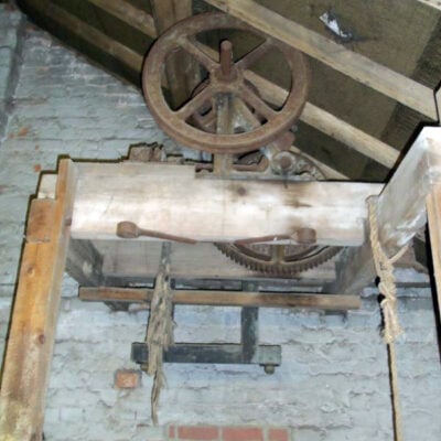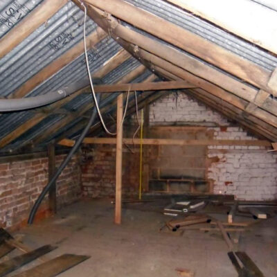 The three-storey rectangular gabled outbuilding on the eastern side of the yard (henceforth referred to as Building B) appears, in its present form, to be of relatively modern date (first shown on an OS map of 1955). However, further investigation suggests that the central and eastern parts of the building probably incorporate fabric from an L-shaped building of probable mid-late 19th -century date to the rear of No. 12 High Street, first shown on the OS 1st -edition map of 1889.