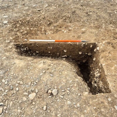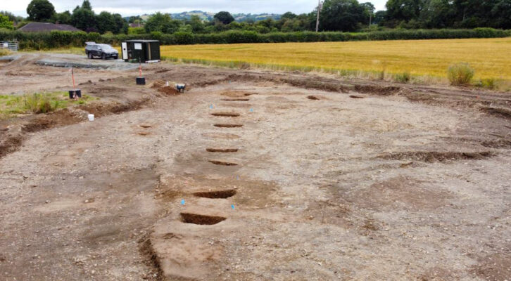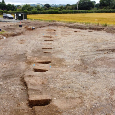 The proposed construction of a new road bridge over the canal on Carraghofa Lane, Llanymynech, presented an opportunity to investigate this prehistoric mystery. Ahead of construction work, a programme of Strip, Map & Excavate investigation was implemented on both banks of the canal, which revealed two adjoining linear pit alignments, one running broadly northeast to southwest and the other northwest to southeast. Three roughly linear ditches and an isolated pit were also found while a phase of post-medieval disturbance associated with the construction of the canal was also identified.