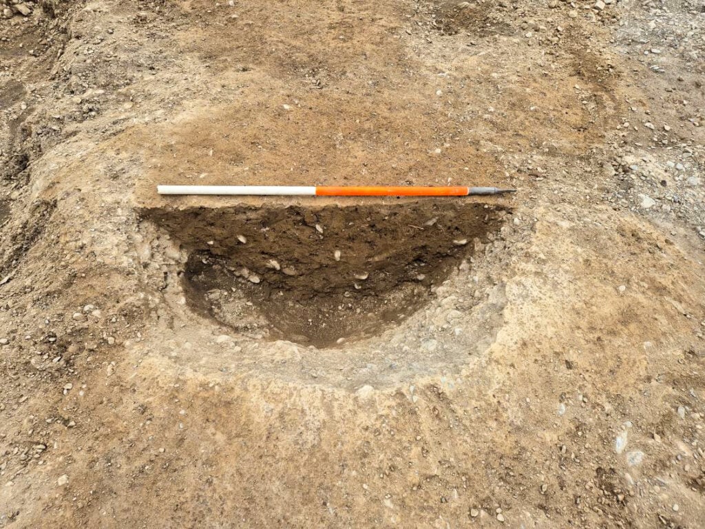 None of these pits contained any dating evidence but similarities to the more than 20 closely spaced pits previously found nearby at Four Crosses suggested a Late Neolithic to Early Bronze Age date, with one of the ditches also belonging to this same prehistoric period, while the other two ditches and the isolated pit remaining undated.